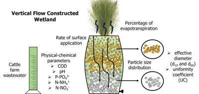 Evaluation of parameters COD, pH, P-PO43-, N-NH4+ and N-NO3- through a vertical flow constructed wetland system for the treatment of cattle farm wastewater