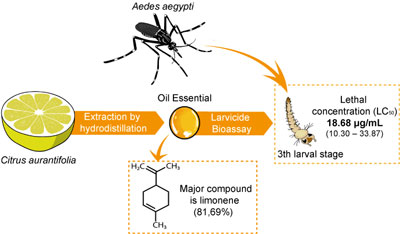 The essential oils extracted from Citrus aurantifolia have the limonene as their main compound and present a strong larvicidal activity against Aedes aegypti in the 3rd larval stage