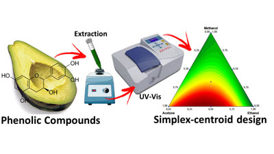 Through a simplex-centroid design, the extraction of the total phenolic compounds from the avocado pulp and peel was optimized.