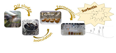 Production of surfactin, by fermentation, having as main substrate of this process a mixture of oily sludge (soybean and cotton), which is a residue from the vegetable oil refining process