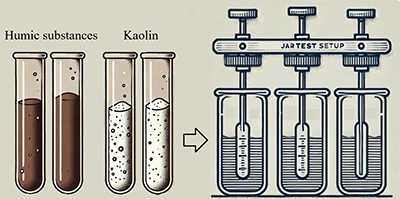 A synthetic water based on kaolin and humic substances was evaluated as a substitute for natural surface water in coagulation-flocculation tests, aiming to provide standardized and representative samples for experiments with a large number of samples.