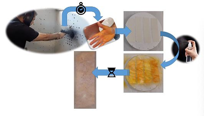 After the shots, the residues (GSR) were collected from the shooter's hand and solutions were applied to form complexes with characteristic colors.