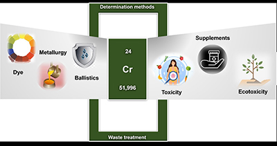 Chromium shows species with divergent chemical and biochemical properties. Despite this, chromium ions have numerous relevant applications, such as in food supplementation, pigment industry, and steel production.