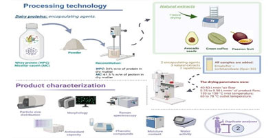 The graphic figure summarizes the work in question: Study of the encapsulation process of natural extracts by milk proteins using spray dryer.